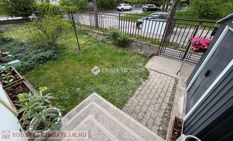 Az ingatlanhoz tartozik egy saját használatú, lekerített kertrész ideális reggeli kávézáshoz vagy kerti sütögetéshez , valamint egy közös udvar is, ahol elméletben egy autó számára a parkolás biztosított.