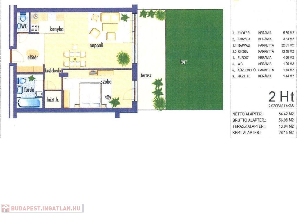 Budapest III. kerületének egyik legkedveltebb lakóparkjában, a SUN PALACE-ban kínálunk eladásra egy azonnal költözhető, 54 nm-es, két szobás lakást, melyhez egy 14 nm-es FEDETT TERASZ és egy 28 nm-es saját, műfüves KERTRÉSZ is tartozik.
