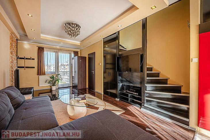 Eladó Óbudán egy 76 nm-es, modern stílusú, kiváló állapotban lévő belső kétszintes lakást egy 4 emeletes, újszerű társasház 3. emeletén.