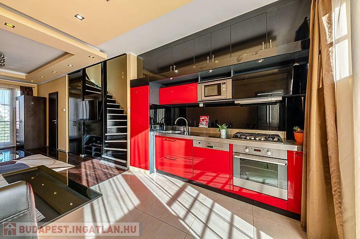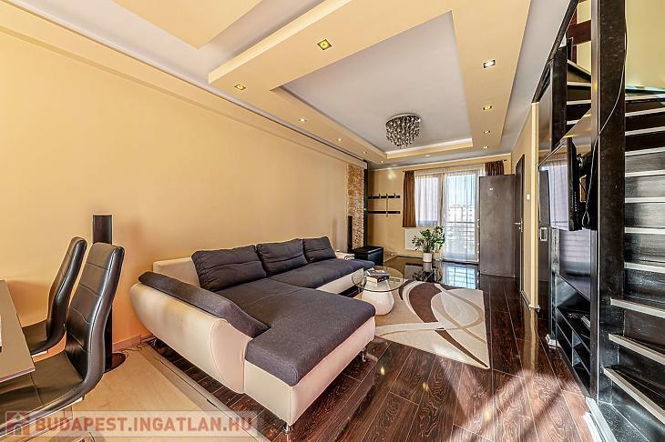 Eladó Óbudán egy 76 nm-es, modern stílusú, kiváló állapotban lévő belső kétszintes lakást egy 4 emeletes, újszerű társasház 3. emeletén.