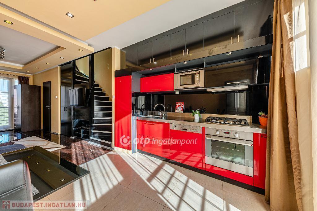 Az Óbuda Lakókertben található ez a 74 nm-es, belső kétszintes lakás, amely egy lakberendező által megálmodott, egyedi megoldásokkal büszkélkedik. Modern és fiatalos, mégis otthonos hangulatot áraszt.