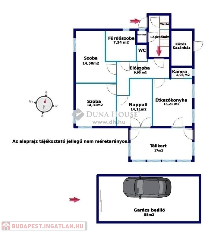 Az ingatlanhoz egy külön helyrajzi számon nyilvántartott garázsbeálló is tartozik, amely a lakással együtt megvásárlandó, ára 10 000 000 forint.