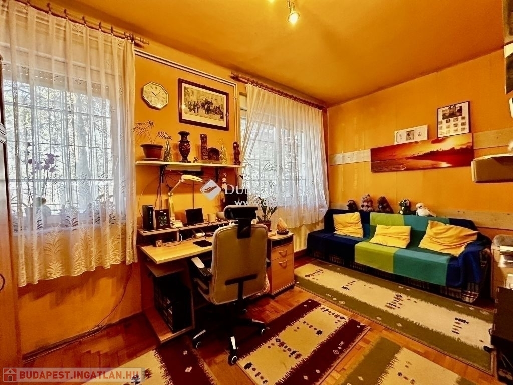 A ház 1939-ben épült téglából, közös használatú kert veszi körbe, amelyben egy kis medence is helyet kapott. A háznak közös kazán helyisége van, amely a kertből nyílik, itt található a három lakás külön gázcirkója. A tulajdonosok néhány éve cserélték a kazánt. A zárt lépcsőházban egy tároló is tartozik a lakáshoz. Az ingatlanhoz egy külön helyrajzi számon nyilvántartott garázsbeálló is tartozik, amely a lakással együtt megvásárolandó, ára 10 000 000 forint.
