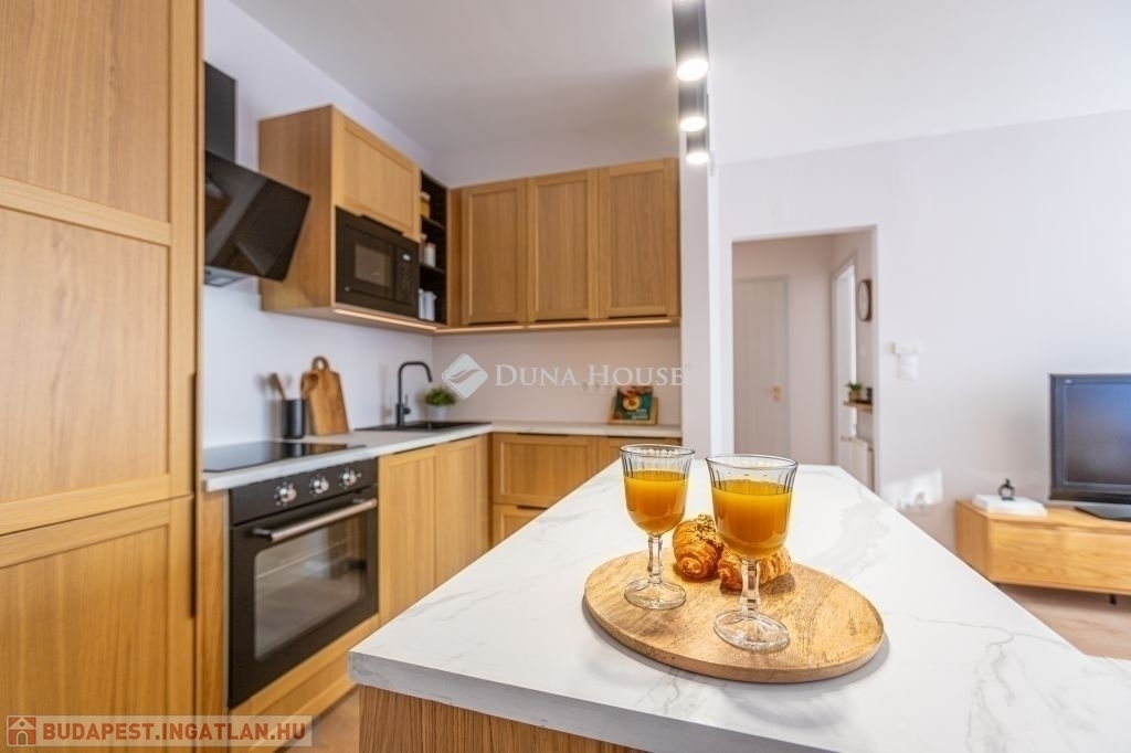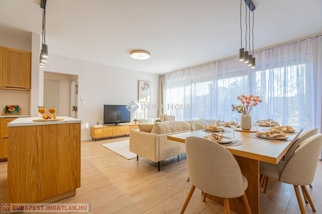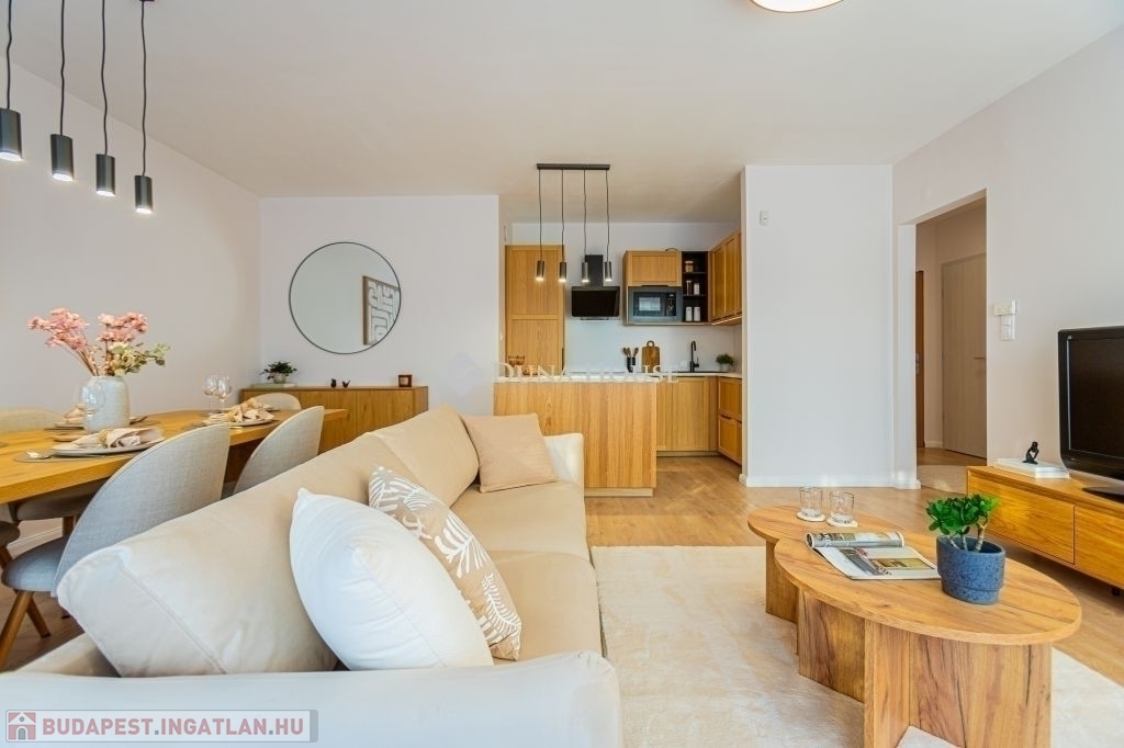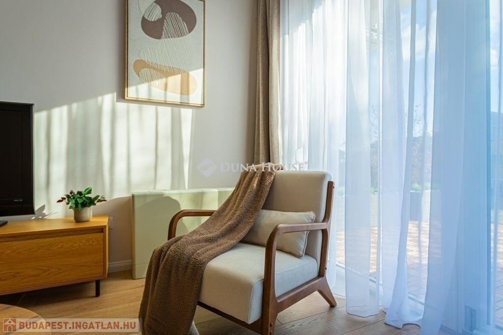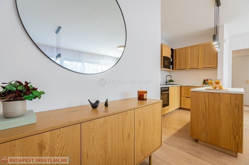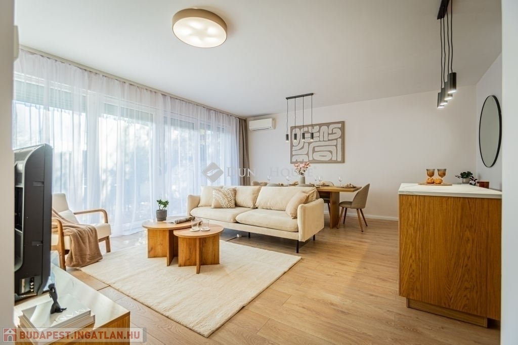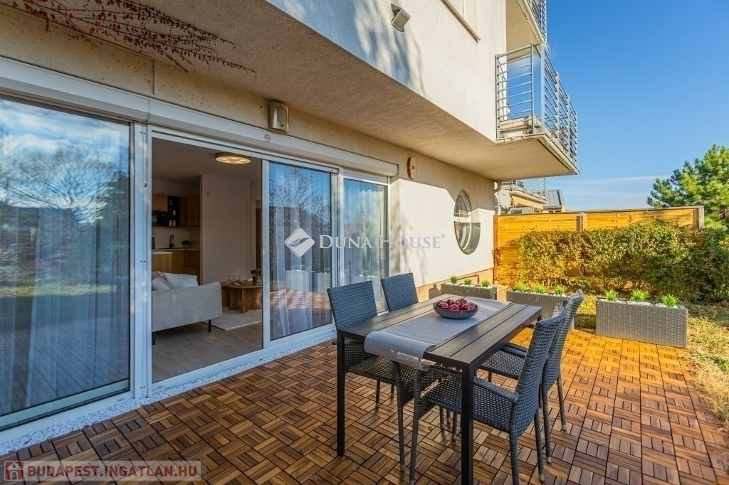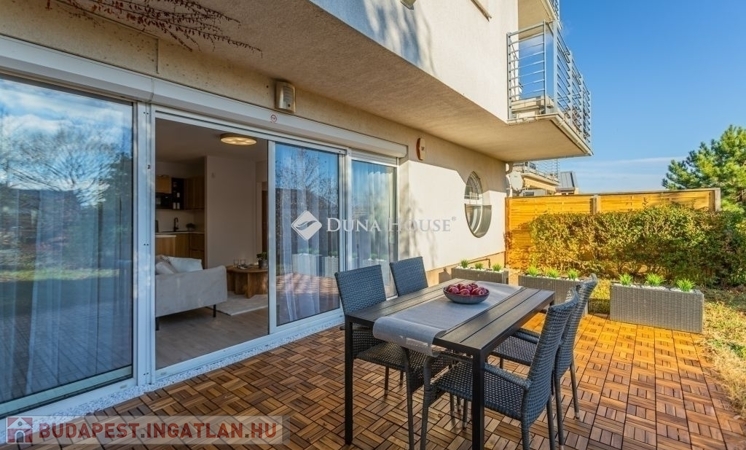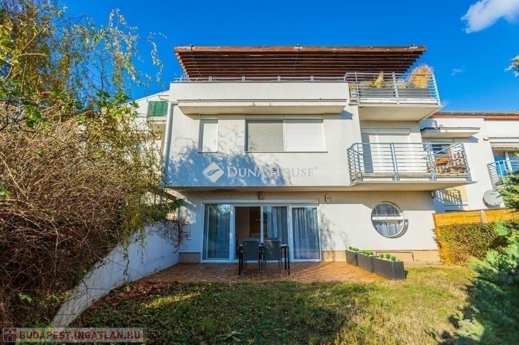Kertkapcsolat, nagy terasz, friss felújítás, modern konyha, külön tároló, teremgarázs mindez egy csendes, biztonságos óbudai lakóparkban.