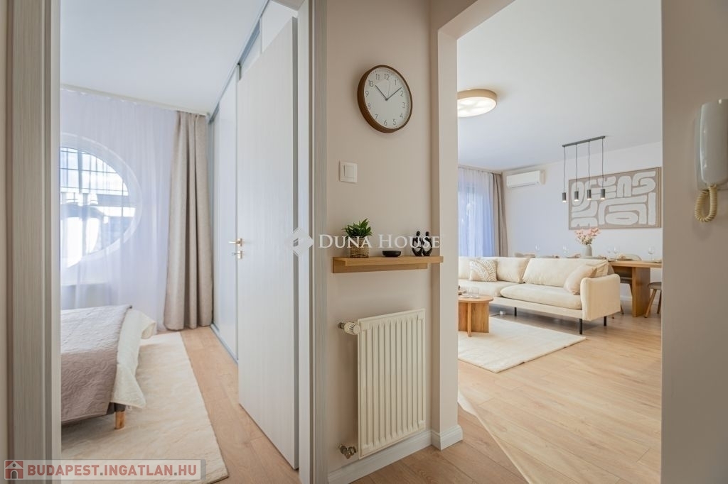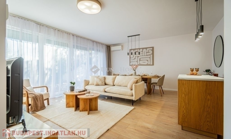 Ez az 57 m²-es lakás tökéletes elosztással vár: a tágas, több mint 27 m²-es nappali és a külön nyíló hálószoba kényelmes életteret biztosít. Az ingatlan igazi különlegessége azonban a hatalmas, 20 m²-es privát terasz és a hozzá tartozó kert, amely tavasztól őszig egy plusz „szobaként” funkcionál.