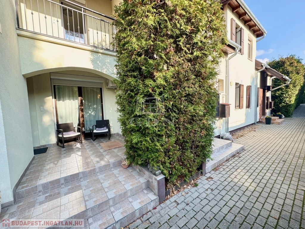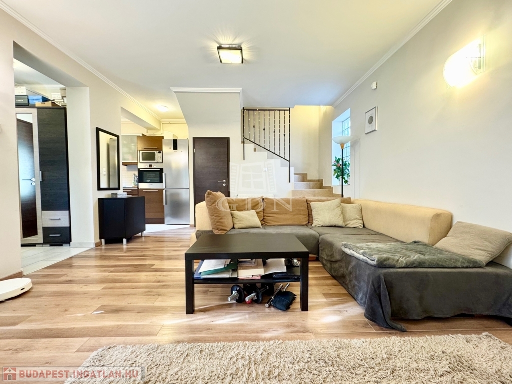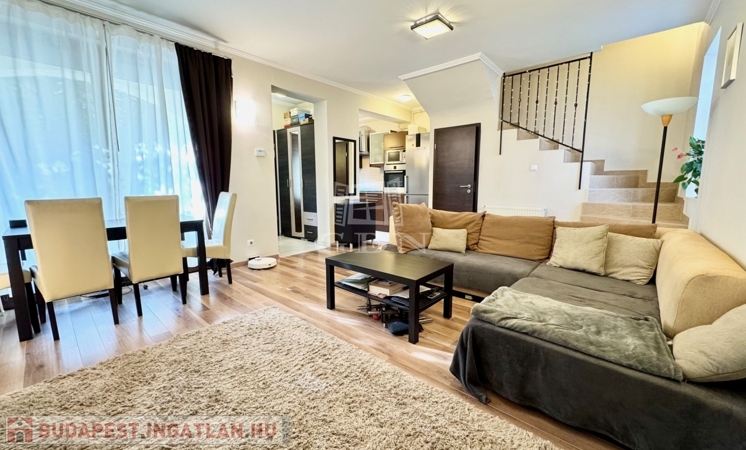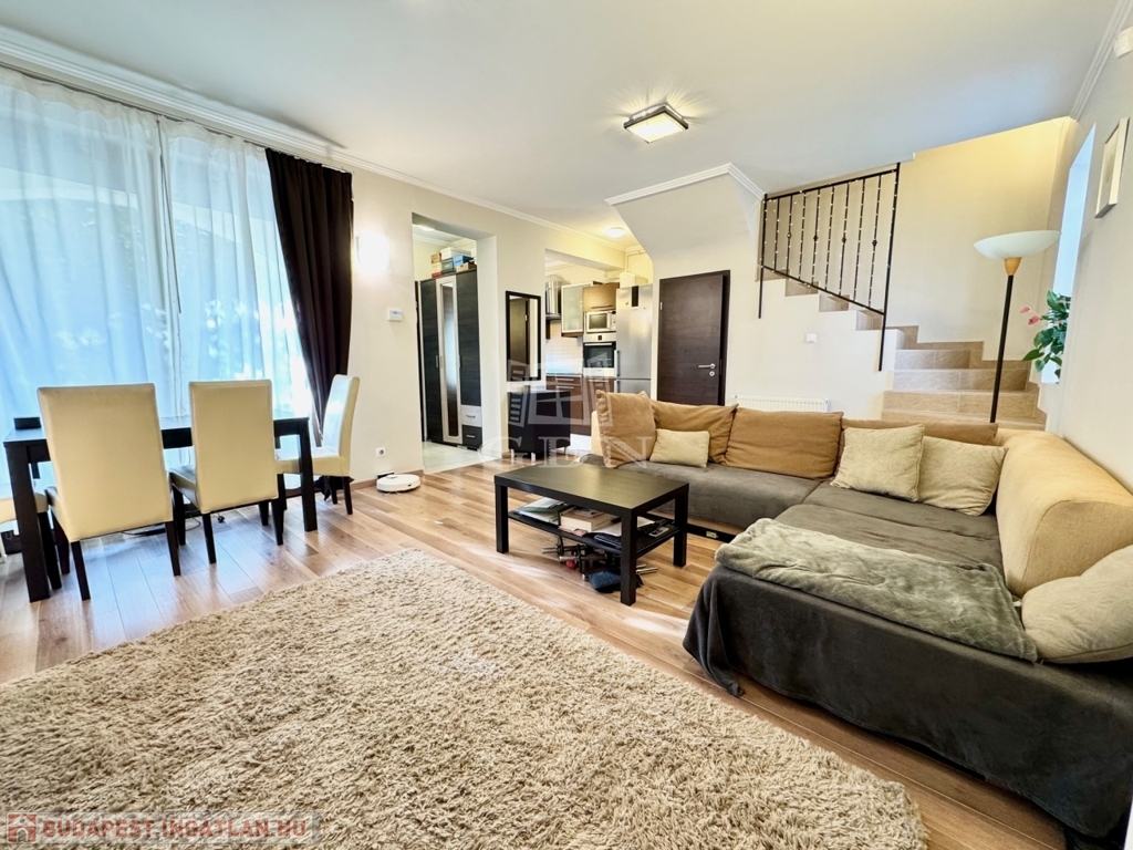 III. kerületben, Csillaghegyen, kertvárosi környezetben, kiváló közlekedés és ellátottság mellett, CSENDES aszfaltozott mellékutcában, 2011-ben épült, 4 lakásból álló sorházban, saját tulajdonú 102 nm-es intim kerttel, valamint dupla terasszal rendelkező (8+5 nm), 2 szintes, 70 nm-es lakóterületű, kiváló elosztású, nappali + 2 hálószobás, ablakos konyhás, kamrás, dupla wc-s, napos-világos D-NY-i fekvésű, alacsony fenntartású, kombinált gázcirkó fűtésű, egyedi mérésű, újszerű állapotú, klimatizált, riasztórendszerrel felszerelt, tehermentes, rugalmasan birtokba vehető, önálló helyrajzi számmal rendelkező sorházi lakás, beépített, gépesített konyhával, igényesen kialakított, fedett felszíni gépkocsibeállóval, gondozott kerttel, 6 nm-es kerti tárolóval, kulturált lakóközösségű társasházban eladó.