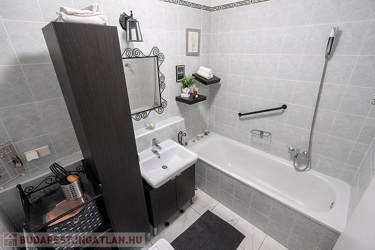 A lakásban találhatóegy nappali, étkező, konyha, kádas fürdő és 2 hálószoba.