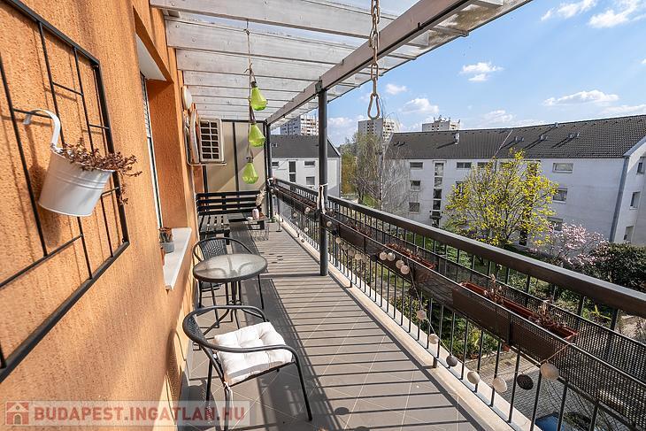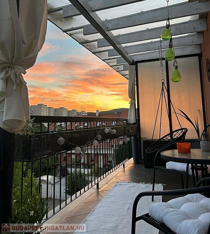 Tartozik az ingatlanhoz saját 8 négyzetméteres tároló és garázs is, valamint egy gyönyörű panorámás erkély.