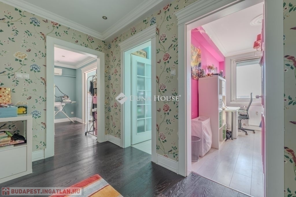 A lakás 9 éve teljeskörű felújításon esett át, amely magában foglalta a villamos- és vízhálózat teljes cseréjét is. Egyedi, minőségi asztalosmunkák eredményeként beépített szekrények és tárolók biztosítják a praktikus helykihasználást. A konyha néhány éve készült el, szintén egyedileg gyártott bútorokkal.