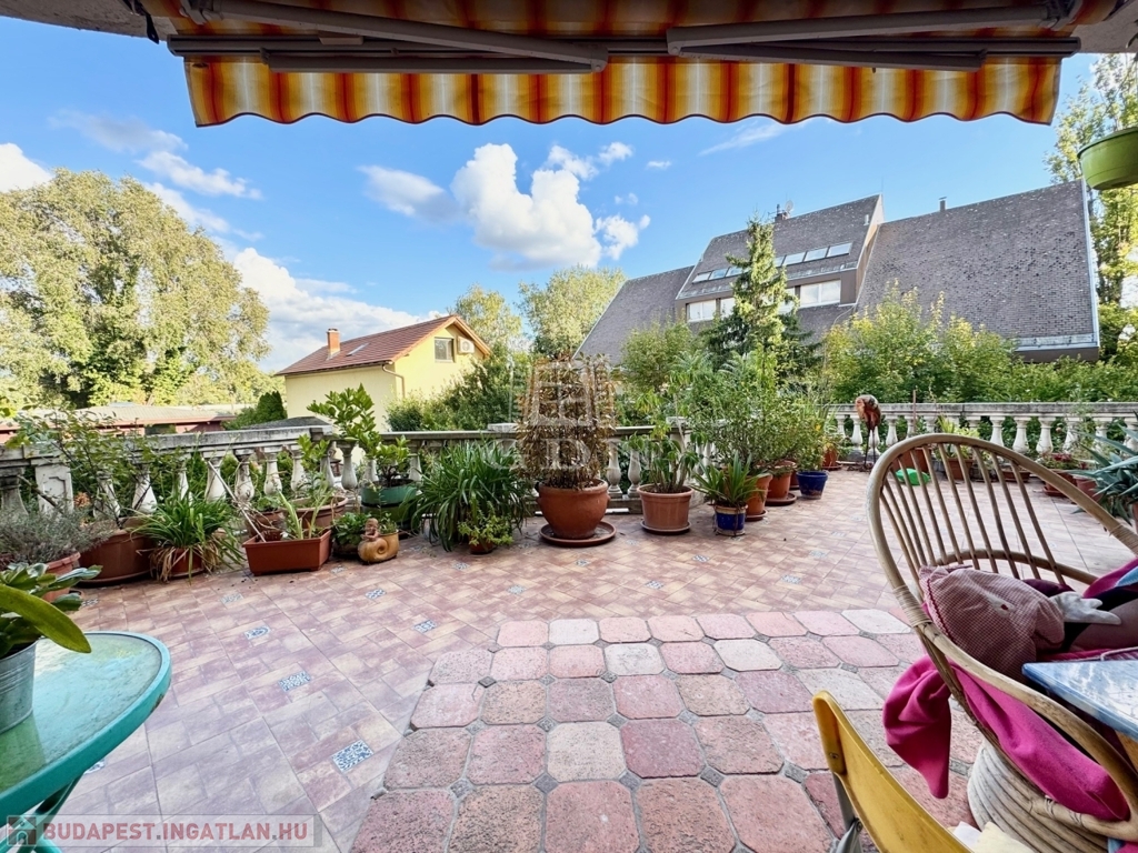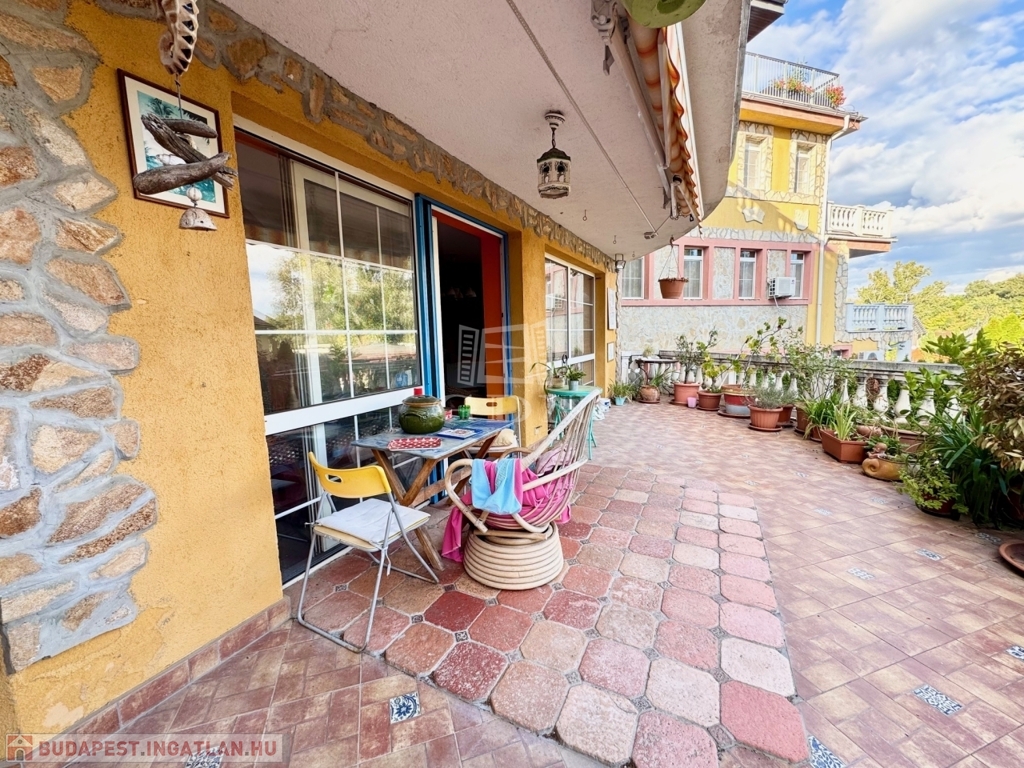 III. kerületeben, Budapest egyik legkedveltebb Duna parti sétányán, a Római part Pünkösdfürdői részén, csendes, NEM ÁRTÉRI utcában, jó közlekedés és ellátottság mellett, 2000-ben, Mediterrán stílusban épült, szigetelt, 9 lakásos, társasházban, 1. emeleti, 98 nm-es, nappali + 2 hálószobás, ablakos konyhás, HATALMAS 70 NM-ES TERASSZAL rendelkező, napos-világos (D-K) fekvésű, kombinált gázcirkó fűtésű, jó állapotú, klimatizált, riasztórendszerrel felszerelt, rugalmasan költözhető, TEHERMENTES lakás, beépített, gépesített konyhával, teremgarázs beállóval és tárolóval, kulturált lakóközösségű házban eladó.