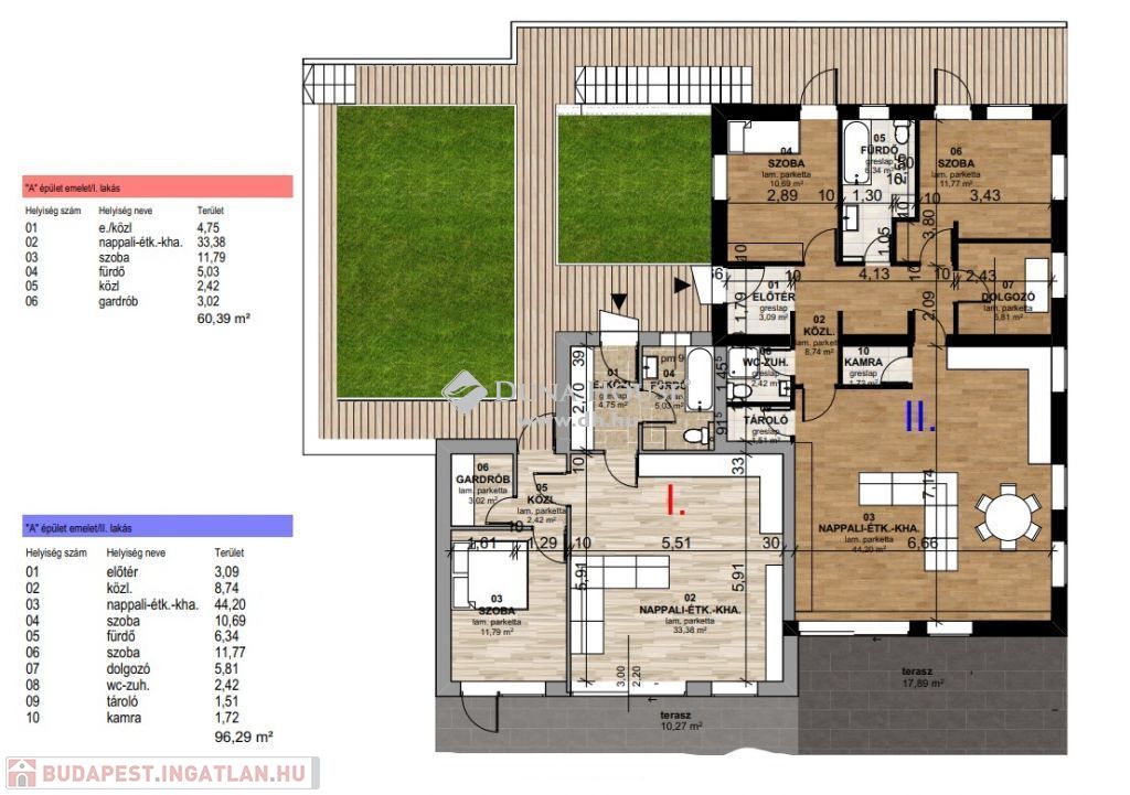 ARANYHEGYEN!Déli fekvésű, 3 lakásos társasházban épül meg a 96 nm-es 1. emeleti lakás, saját kertkapcsolattal.2 hálószoba , 1 dolgozó szoba + nappali + konyha + étkező és kamra + 2 fürdő + mosókonyha kerül kialakításra a lakásban. A lakás kuriózuma a 18 nm-es erkély, amely panorámás kilátást nyújt a budai hegyekre. Az ingatlan körbe napozott.Az építés a mai energetikai követelményeknek megfelelően készül. A fűtést és hűtést BOSCH típusú hőszivattyú látja el. A kivitelezés során minőségi alapanyagokat használ a kivitelező. Jelenleg még építés alatt lévő ingatlanba , a vevő választhatja ki a burkolatokat, esetlegesen a szoba falainak elhelyezkedését. Bizonyos keretösszegig a vételárba tartoznak a kiválasztott burkolatok és egyéb átalakítási munkálatok.A környéken több újépítésű társasház vagy ház épül jelenleg.Birtokbaadás várható időpontja 2024 III. negyedév.A vételárba tartozik 1 DB TEREMGARÁZSHELY, ill. TÁROLÓ IS..KOMPLETT MŰSZAKI KIVITELEZÉSI TARTALOM ELÉRHETŐ AZ IRODÁNKBANKIVONATOLT MŰSZAKI LEÍRÁS:44 cm NF vázkerámia vagy ezek hőtechnikai tulajdonságaikkalrendelkező más típusú égetett téglábólLakások közötti elválasztó teherhordófal - 30 cm Silka vagy vele egyező hanggátló tényezőjű hanggátló téglábólAblakok: - 6/7 légkamrás, 3 üvegesTeraszajtó: - mozgatható toló ajtó, antracit kívül, belül fehér színűBelső ajtók: - Dusa típusú, pallótokos ajtók, fehér színre mázolva, kilinccsel bruttó 80 E Ft-ig választható, küszöbök nélkülBejárati ajtó: - Mabisz által elfogadott biztonsági színes bejárati ajtó, bruttó 350.000,-Ft értékben.Garázsajtó: - Kling szekcionált garázsajtó motoros mozgatással, szín: antracit, ára bruttó 280.000,-FtPadlózaton: járólap bruttó 10,0 E Ft/nm – ig választható.Melegburkolat bruttó 10,0 E Ft/nm-igFürdőszobánként épített zuhany 4-5 mm biztonsági üveggelDéli fekvésű, 3 lakásos társasházban épül meg a 96 nm-es 1. emeleti lakás, saját kertkapcsolattal.2 hálószoba , 1 dolgozó szoba + nappali + konyha + étkező és kamra + 2 fürdő + mosókonyha kerül kialakításra a lakásban. A lakás kuriózuma a 18 nm-es erkély, amely panorámás kilátást nyújt a budai hegyekre. Az ingatlan körbe napozott.Az építés a mai energetikai követelményeknek megfelelően készül. A fűtést és hűtést BOSCH típusú hőszivattyú látja el. A kivitelezés során minőségi alapanyagokat használ a kivitelező. Jelenleg még építés alatt lévő ingatlanba , a vevő választhatja ki a burkolatokat, esetlegesen a szoba falainak elhelyezkedését. Bizonyos keretösszegig a vételárba tartoznak a kiválasztott burkolatok és egyéb átalakítási munkálatok.A környéken több újépítésű társasház vagy ház épül jelenleg.Birtokbaadás várható időpontja 2024 III. negyedév.A vételárba beletartozik 1 db teremgarázshely + 1 db tároló.“MŰSZAKI LEÍRÁS”- szerkezet: - 30 cm vasalt (8 mm futó- és függőleges betonvas) monolit falazat,rétegrend: betonfalazat, vízszigetelés, 5 cm hőszigetelés (xps), 15-50 cm- vízszigetelés: - kent szigetelés + ház körül (hegyfelőli 3 oldalon) rétegvíz elvezetésdrén rendszerrel az 1. lakás esetén az utcafronti telekhatár mentén kialakítottszikkasztóba, rétegrend: bitumenes kellősítő, kent bitumenes szigetelés, dörken lemezFöldfelszín feletti teherhordófalazat:- szerkezet: 44 cm NF vázkerámia vagy ezek hőtechnikai tulajdonságaikkalrendelkező más típusú égetett téglábólRétegrend: - belül: 1 cm cementvakolat, Q3 minőségű festés Héra belsőfal festékkel(2x glettelés, 2x festés) vagy ezen műszaki paramétereknél jobb tulajdonsággalrendelkező falszerkezet.Lakások közötti elválasztó teherhordófal (közös falszakasz):- 30 cm Silka vagy vele egyező hanggátló tényezőjű hanggátló téglaRétegrend: 1-1,5 cm cementvakolat, Q3 minőségű festés Héra belsőfal festékkelVálaszfalazat:- fürdőszobák és egyéb válaszfalak falazata: 10 cm NF égetett tégla, 1-1,5 cm vastagmeszes vakolat, Q3 festésselTetőszerkezet:- síktető (lapos tető) az építési tervdokumentáció szerintEresz- és függőcsatorna:- festett lemez ereszcsatorna rendszerTeraszajtó: - mozgatható toló ajtó, antracit kívül, belül fehér színűBelső ajtók: - Dusa típusú, pallótokos ajtók, fehér színre mázolva, kilinccselbruttó 80 E Ft-ig választható, küszöbök nélkülBejárati ajtó: - Mabisz által elfogadott biztonsági színes bejárati ajtó, bruttó350.000,-Ft értékben.Garázsajtó: - Kling szekcionált garázsajtó motoros mozgatással, szín: antracit,ára bruttó 280.000,-Ft- mely benne van az eladási árban!Fürdőszobák, konyha, étkező és előtér:- padlózaton: járólap, 30x30-as/60x30-as méretű, amely bruttó 10,0 E Ft/nm – igválasztható, élvédők nélkül, járólap szegélyezés azonos anyagból 8 cm magasságigOPCIÓ, többletköltség: érték határ feletti beszerzés, nagyobb lapméretek beépítése,élvédők beszerzése és felrakása, ez esetben az anyagszállításköltsége a vevőt terheli.- fürdőszoba falazaton: fali csempe, 30x30-es/60x30-as méretű, a zuhanyzó mögött4 nm, illetve a kézmosó körül 1 nm, valamint a wc körül 1 nm, összesen 6 nmburkolási felületen bruttó 10,0 E Ft/nm-ig választható, élvédők nélkülOPCIÓ, többletköltség: megadott területek feletti burkolás, és a megadottburkolólap mérettől eltérő méretű burkolólapokkal történő burkolás.Lakószobák: - melegburkolat bruttó 10,0 E Ft/nm-ig, szegőléc bruttó1.000 Ft/fm-ig, szobánként 3 belső sarok és 2 végzáró bruttó 1.000 Ft/csomag-igárbanOPCIÓ, többletköltség: érték határ feletti beszerzés.Fürdőszoba:- alapszerelés: 1 db beépített (geberit) wc (bruttó 50.000,-Ft értékű), 1 db építettzuhany 