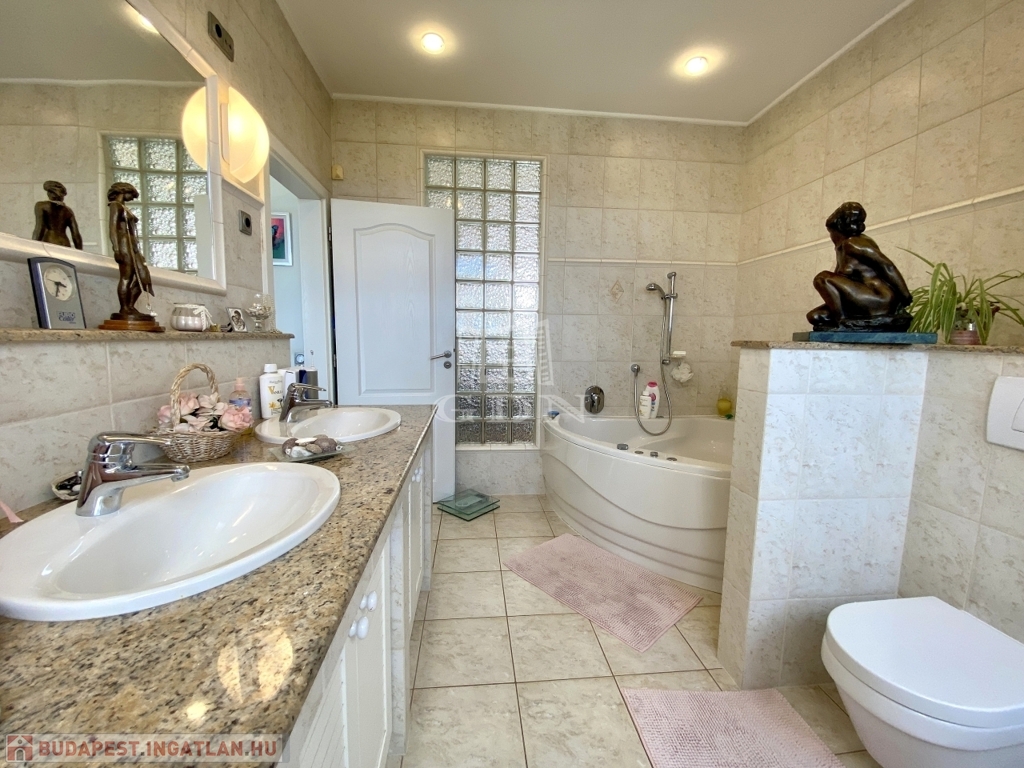 A két nagyméretű hálószoba az emeleten található, ahová gránit burkolatú lépcsőn jutunk fel.