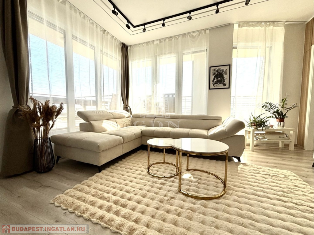 A lakás teljesen bútorozottan, klimatizáltan és azonnal költözhető állapotban eladó. Az épület új építésű, igényes lakberendezési megoldásokkal, lifttel, teremgarázsban kényelmes parkolási lehetőséggel (opcionálisan 10 millió Ft-ért megvásárolható).