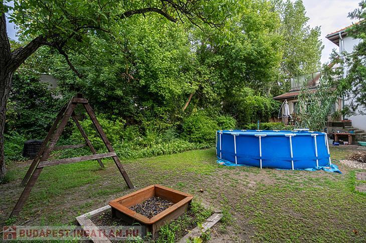 A kellemes méretű kert számos lehetőséget kínál: ideális lehet pihenésre, gyermekeknek játszótér kialakítására vagy akár egy teraszos kerti kiülő megvalósítására is