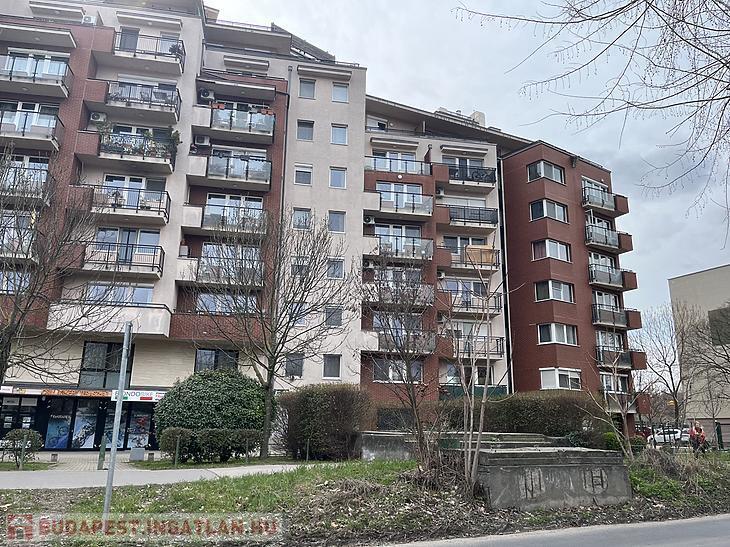 A lakás egy 2005-ös tégla építésű 8 emeletes liftes társasházban található az első emeleten.
