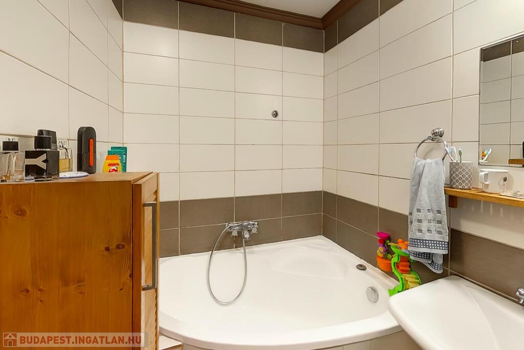 A közelmúltban felújítása megtörtént ami a vezetékek cseréjét is magába foglalta. A fürdőszoba tágas, modern burkolatokkal, szaniterekkel felszerelve.