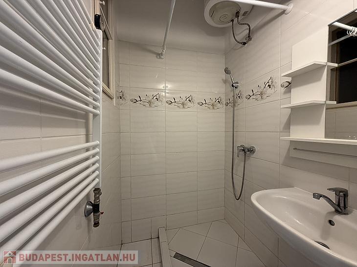 A fürdőszobában beépített zuhany van. Wc külön helyiségben.