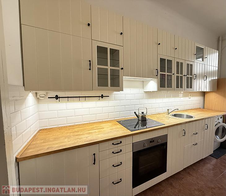 A konyha új bútorzatot kapott, a mosógép ki-és beállása ebben a helyiségben lett kialakítva.
