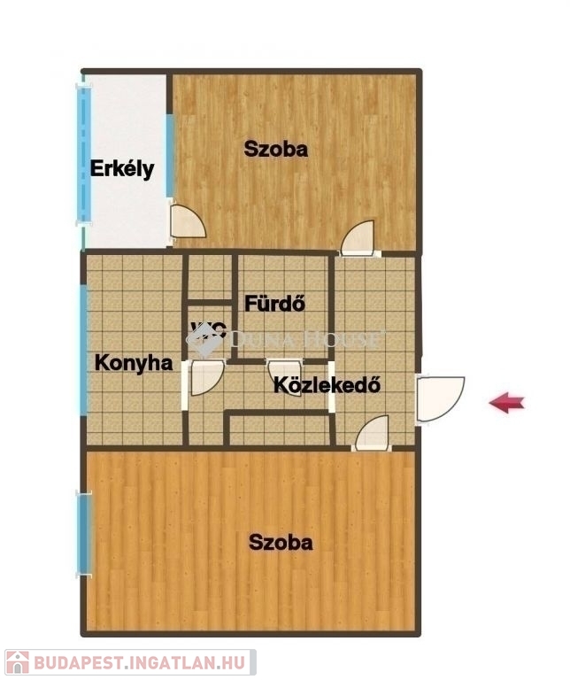 Az ingatlan tulajdoni lap szerint 48 m²-es, amihez egy jól kihasználható, 4 m²-es erkély is tartozik (így a valós használati terület 52 m²). A lakás elosztása praktikus: két külön nyíló szoba (17,5 és 12,5 m²), ablakos konyha, valamint külön fürdő és WC található benne.