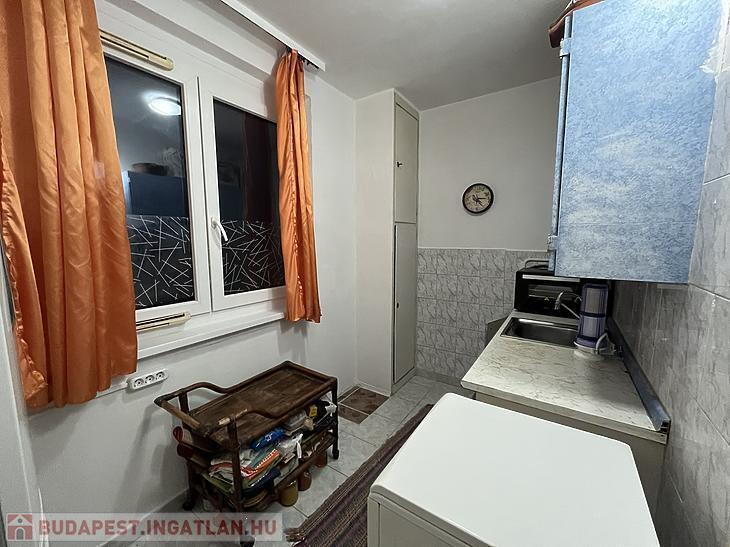 A konyha jól alakítható, praktikus méretű, nagy ablakának köszönhetően jól szellőztethető és világos. A fürdőszoba és a Wc külön helyiségben kapott helyet, a fürdőben öntöttvas kád található. A mosógép kiállása jelenleg nincsen kialakítva.