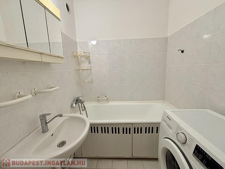 A fürdőszoba és a Wc kulturált, jó állapotú burkolatokkal rendelkezik, a fürdőben egy öntöttvaskád található.
