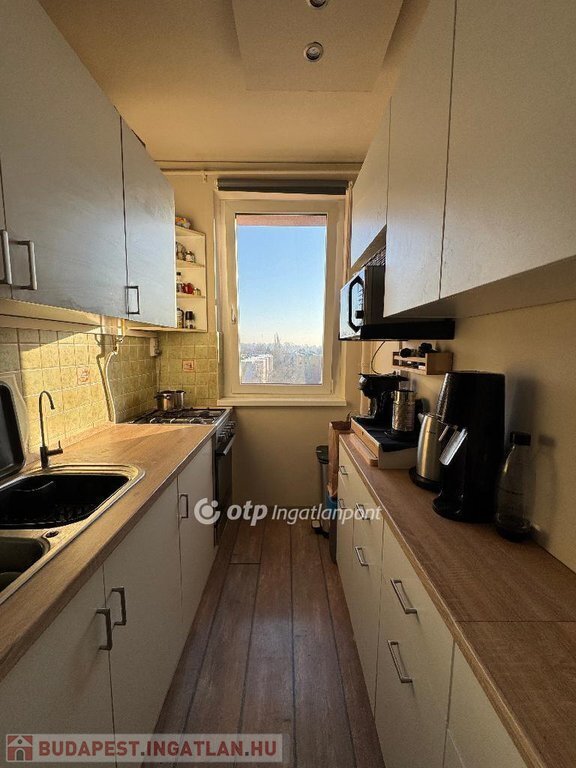 A panelház rendezett, dupla liftes, a lakás a 6. emeleten van. A keleti fekvésű erkélyről a panoráma a Dunára és a Megyeri hídra nyílik.