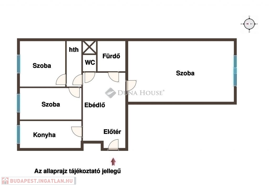 – 57 m²-es, napfényes, 3 szobás lakás, jól használható elrendezéssel