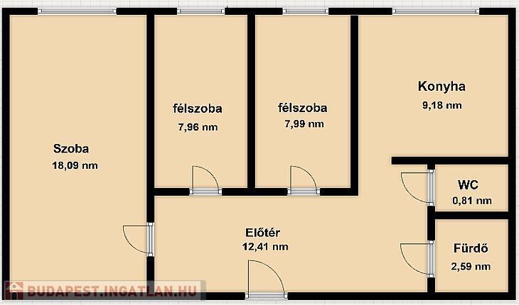 Óbudán eladásra kínálunk egy 4 emeletes társasház 3.emeletén lévő 59 nm-es 1+2 félszobás panellakást.