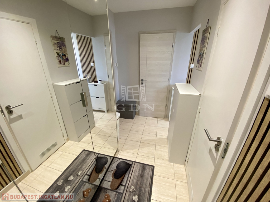 Az ingatlan a 7. emeletről – nyugati tájolással – pompás kilátást kínál a környező hegyekre és a budai panorámára.
