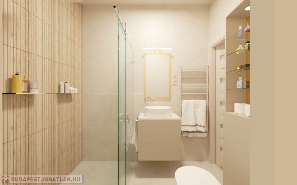 Igényesen kialakított fürdőszoba, modern szaniterekkel