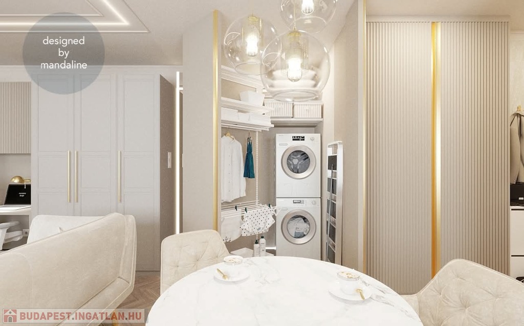 A lakás hangulata az első pillanattól magával ragad: a letisztult színek, az egységes burkolatok, az ízlésesen kiválasztott csillárok és világítótestek, a finoman megválasztott függönyök, a beépített és szabadon álló bútorok együttese valódi otthonérzetet teremt.