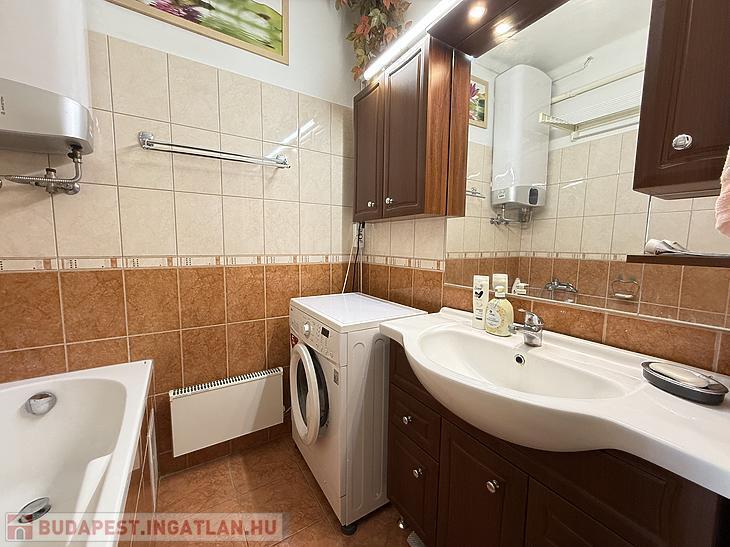 A fürdőszobában kád van, a mosógép ki-és beállása ebben a helyiségben került kialakításra.
