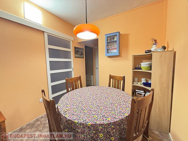 A falak simára festettek, a bal oldali hátsó szoba tapétás, ami külön hangulatot ad neki. Az étkező tágas, ideális helyet kínál a közös étkezéseknek és a családi beszélgetéseknek.