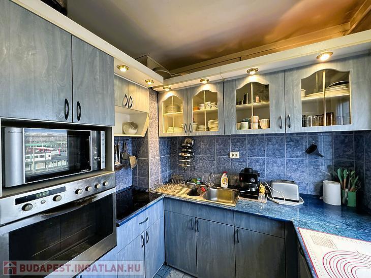 A konyhája ablakos, valamint új konyhabútorzattal rendelkezik.