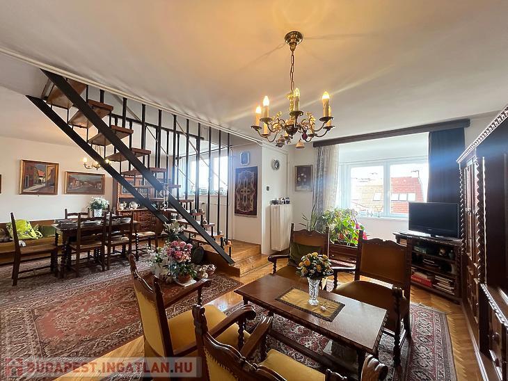 Eladó egy 88nm-es, belső két szintes jó elosztású 4 emeletes tégla építésű társasház 4. emeletén lévő1+2 félszobás lakás.