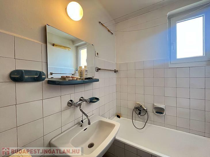 A lakás egyik nagy előnye a két fürdőszoba, melyek közül az egyik az alsó, a másik a felső szinten található, így kényelmes megoldást nyújt a mindennapokban, akár több fő számára is.