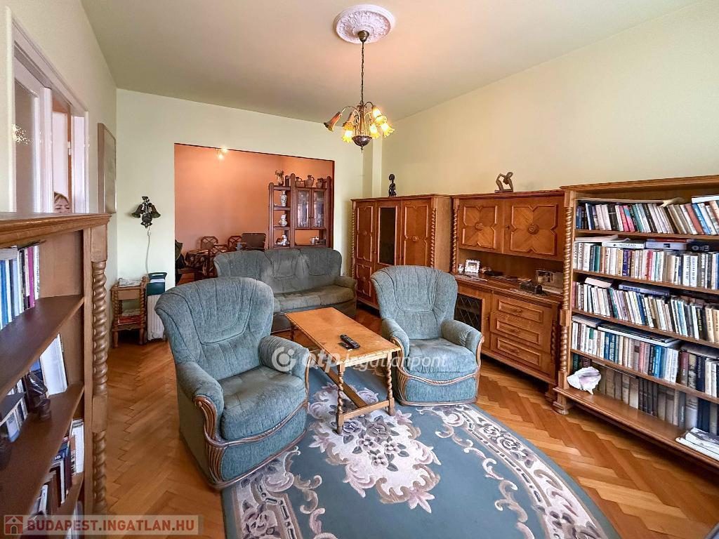 Biztonsági ajtón keresztül jutunk az ingatlanba, ahol egy mára már letünni készülő kor eleganciájával, korhű bútorzattal, igényes korabeli és folyamatosan megújult családi otthon tárul elénk. Tágas nappali egy külön nagy étkező térrel elválasztva, de mégis egyben. Nem recsegő tölgyfa parketta nagyon jó minőségben, koloniál bútorok, kétoldalas bár, nyitható 6 személyes étkezőgarnitúra nagypolgári stílusban. Egy hatalmas hálószoba, beépített erkéllyel, egy kisebb szoba, külön WC, fürdőszoba káddal és zuhanyfülkével, mosógéppel, modern konyha pár éves nagyon szép konyhabútorral, mosogatógéppel, gáztűzhellyel, elszívóval,valamint egy hideg spejz. A hálóból egy beépített zárt terasz nyílik az utcafrontra, reggeli kávézáshoz kitűnő. A konyhánál is a jó szellőzést egy francia 1 m2-es terasz biztosítja, ami a hátsó kertre néz.