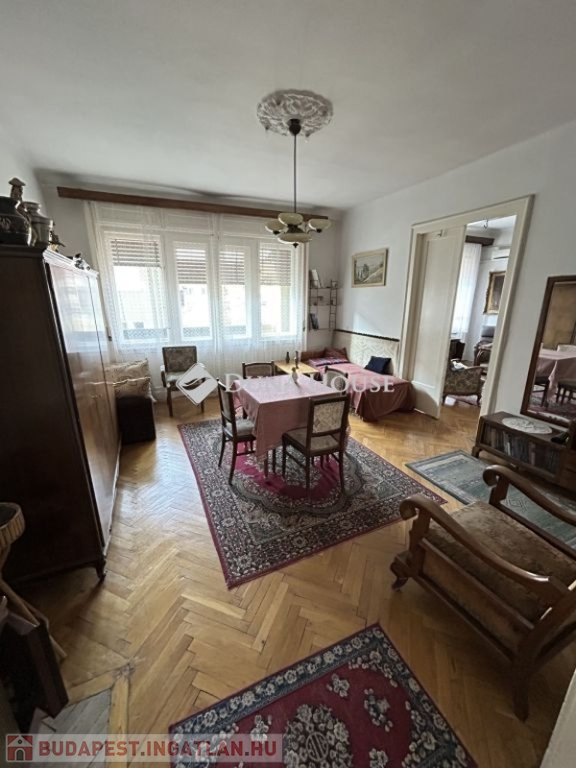 a Kassai utcában kínálunk megvételre egy 109 nm-es polgári lakást kis létszámú társasházban!A lakás 3 + fél szobás, 2. emeleti, erkélyes, lakható állapotú, de a mai kornak megfelelően modernizációra szorul.A lakásba lépve az előtérbe jutunk, ahol beépített szekrények találhatóak és innen nyílik az udvarra néző szoba, a konyha, a hall, valamint a Wc. A hallból nyílik a másik két, utcára néző és a nagy erkéllyel kapcsolódó szoba, melyek egymásból is, de külön-külön is megközelíthetőek. A hallból juthatunk a fürdőszobába, ahonnan közvetlen bejárat van az egyik szobába is. A lakás teljesen körbejárható, de jól szeparálható is. Kétirányú tájolásának köszönhetően világos, napfényes.Az előszobából nyílik a konyha, valamint egy félszoba, melyek az udvarra néznek.A konyhában külön kamra is található.Mind a kamra, mind a Wc, mind pedig a fürdőszoba is világos, egy lichthofra nyílnak az ablakai.Fűtése gázkonvektoros, az egyik szobában található egy cserépkályha is. A lakáshoz tartozik a padláson egy kb. 14 nm-es saját tároló, valamint a zárt udvarban minden lakáshoz egy felszíni autóbeálló.A 9 lakásos társasház lakói barátságosak, csendesek. A ház pénzügyi helyzete rendezett.A gáz felújítása a házban megtörtént, a kéményt kibélelték.Az ingatlan 1/1 tulajdonú, tehermentes, rövid időn belül birtokba vehető!Akár saját lakásnak keres egy klasszikus, jó adottságú polgári lakást, akár irodai célra, vagy rendelőnek szeretné, kérem jöjjön el és nézze meg ezt a nagyszerű lehetőséget!