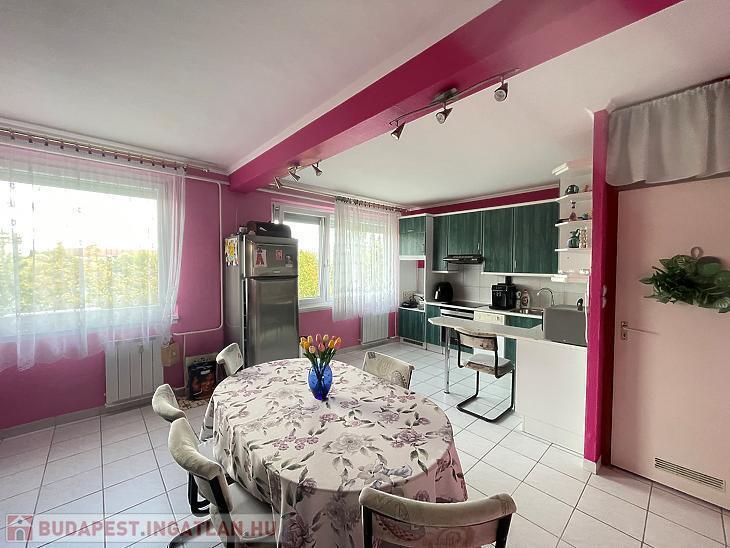Káposztásmegyer I.-en, három emeletes cseréptetős társasház III. emeletén, 80nm-es, amerikai konyha + 2+1félszobás lakás eladó, két franciaerkéllyel. Az ingatlan közepes-jó állapotú, a nappali-konyha járólapos, a többi helyiség laminált parkettás. A nyílászárók műanyag thermo üvegesek, redőnyösek, részben szúnyoghálósok. A konyhabútort és a radiátorokat kicserélték, a fürdőszobát és a wc-t újra burkolták, új kádat szereltek be. A bejárati ajtó több ponton záródó biztonsági. A beépített bútorzat a vételár részét képezik. A környék ellátottsága kiváló, iskolák (Babits Mihály Gimnázium, Karinthy Frigyes Magyar- Angol Két Tanítási Nyelvű Általános Iskola), óvodák, sportolási lehetőségek (Jégpalota, Uszoda), számos bevásárlási lehetőségek elérhetőek. 14-es villamos és a 20E busz megállója pár perc sétára található, amellyel Újpest központ metrómegálló rövid időn belül elérhető! A hirdetésben szereplő adatok tájékoztató jellegűek!