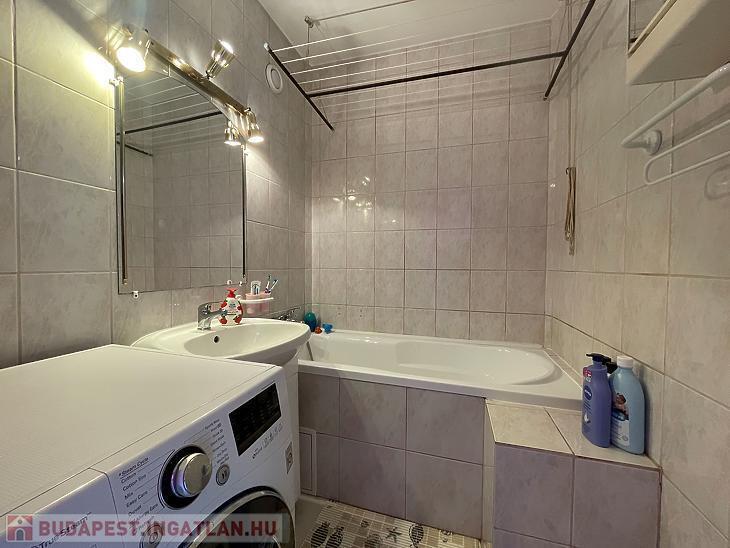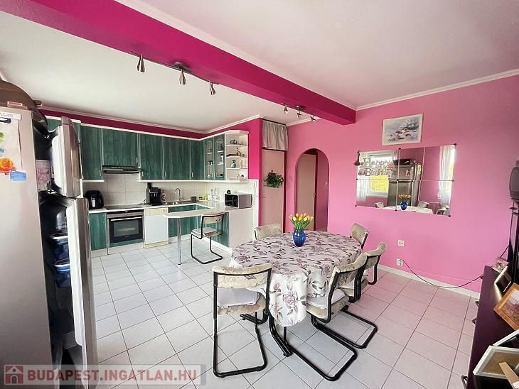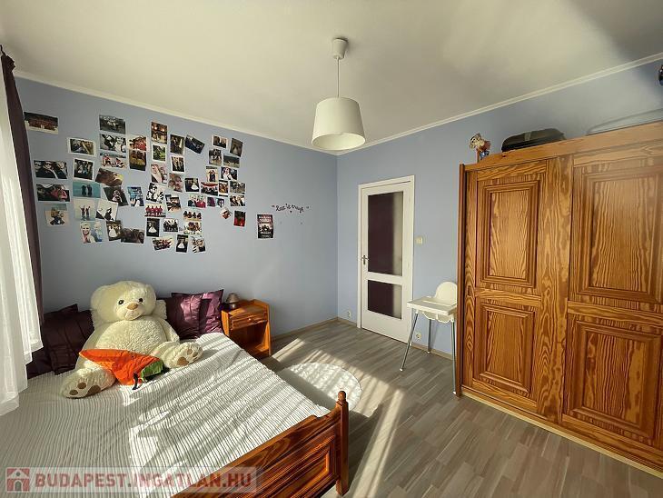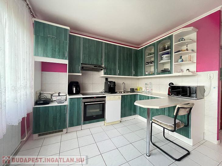 Káposztásmegyer I.-en, három emeletes cseréptetős társasház III. emeletén, 80nm-es, amerikai konyha + 2+1félszobás lakás eladó, két franciaerkéllyel. Az ingatlan közepes-jó állapotú, a nappali-konyha járólapos, a többi helyiség laminált parkettás. A nyílászárók műanyag thermo üvegesek, redőnyösek, részben szúnyoghálósok. A konyhabútort és a radiátorokat kicserélték, a fürdőszobát és a wc-t újra burkolták, új kádat szereltek be. A bejárati ajtó több ponton záródó biztonsági. A beépített bútorzat a vételár részét képezik. A környék ellátottsága kiváló, iskolák (Babits Mihály Gimnázium, Karinthy Frigyes Magyar- Angol Két Tanítási Nyelvű Általános Iskola), óvodák, sportolási lehetőségek (Jégpalota, Uszoda), számos bevásárlási lehetőségek elérhetőek. 14-es villamos és a 20E busz megállója pár perc sétára található, amellyel Újpest központ metrómegálló rövid időn belül elérhető! A hirdetésben szereplő adatok tájékoztató jellegűek!