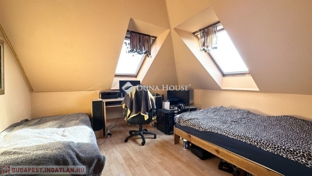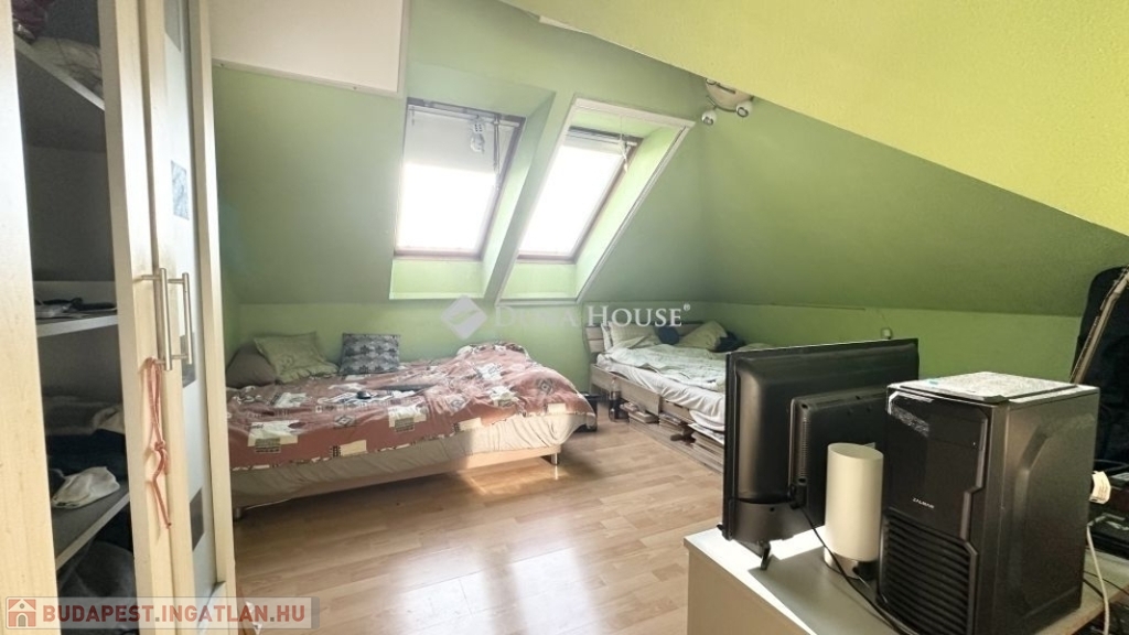 (4.ker),egy négy emeletes, sátortetős házban, egy 4. emeleti plusz tetőtéri lakás(belső kétszintes) 106 m2 összterülettel.A tetőtéri bővítés miatt a lakás hasznos alapterülete 88 m2.A lakáshoz még tartozik egy 4,5 m2 es erkély is, mely a hálószobából közelíthető meg.A társasház 1988 ban épült.A lakás tetőtéri bővítése 20 évvel ezelőtt történt, majd a későbbiekben folyamatos felújításon esett át.3 évvel ezelőtt a külső nyílászárók cseréje is megtörtént, szúnyoghálóval ellátva.A helyiségek: 4 szoba, két fürdőszoba, külön WC, konyha+étkező, előtér, közlekedő és belső lépcső.A szobák burkolata kerámia és laminált padló.A lakás hűtését 3 db klíma biztosítja.Lokáció: 2perc sétára iskola, a természet kedvelőknek a Farkas erdő nyújt lehetőséget a kikapcsolódásra. -Rex állatsziget, rakortán pálya , Halassy Olivér Városi uszoda. Gyakorló sípálya, Szilas aktívpark, Szilas kondipark a közelben.Közlekedés:14 villamos, ami bemegy egész a Lehel térig, 121,126,196,20E buszokRitkaság ilyen lokációval, és ilyen elosztással rendelkező lakást találniJöjjön el, és Győződjön meg a saját szemével is ! ! !