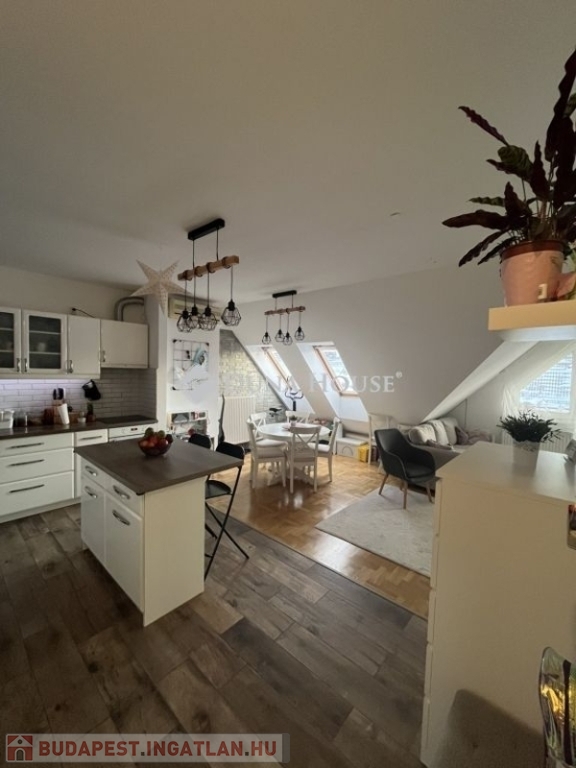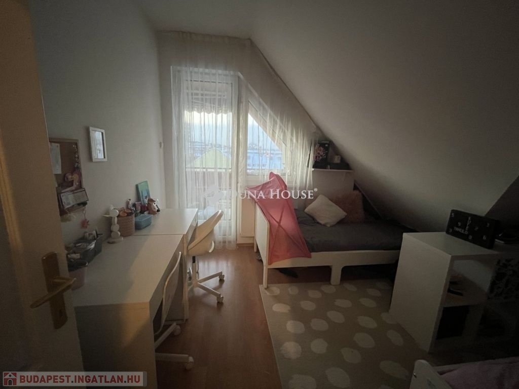 Tetőtéri elhelyezkedés egész nap világos, napfényes terek, a kialakítás miatt a térérzet a tulajdoni lapon szereplő méretnél nagyobb