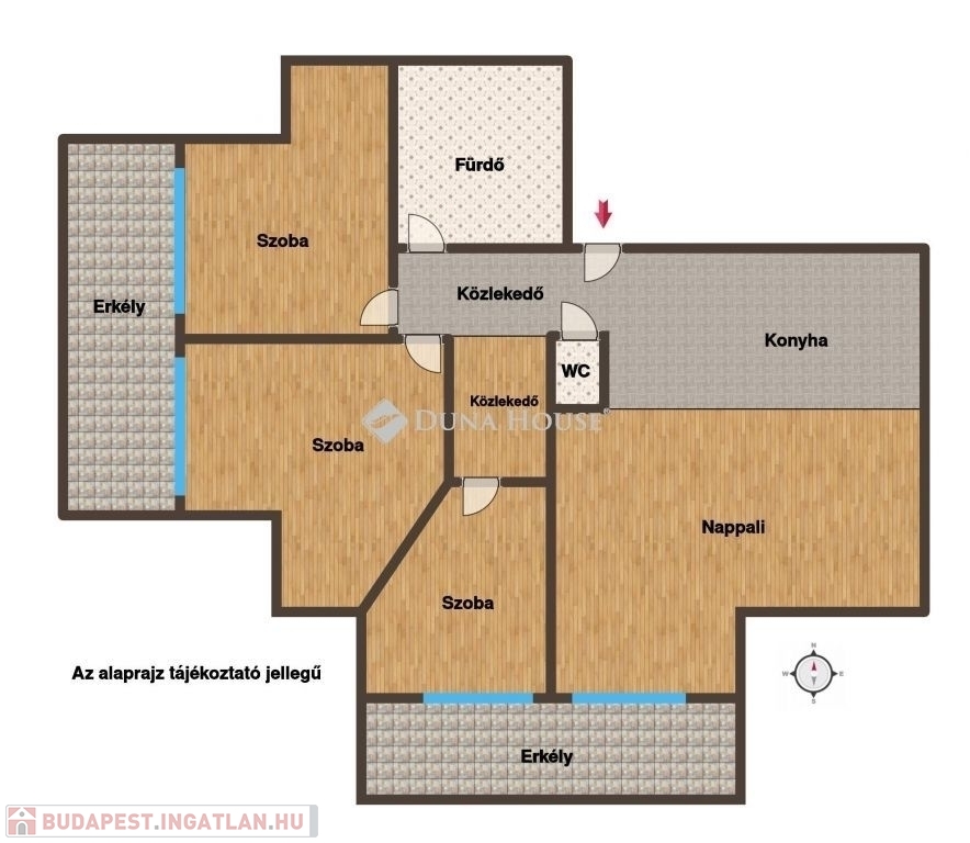 3 külön nyíló hálószoba jól bútorozható, praktikus elrendezés