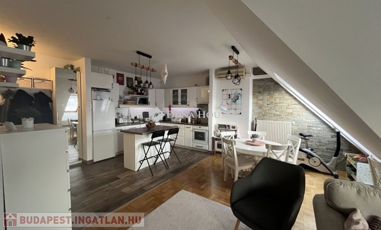 Tulajdoni lapon: 74 m², azonban a hasznos élettér a tetőtéri adottságoknak köszönhetően ennél lényegesen több.