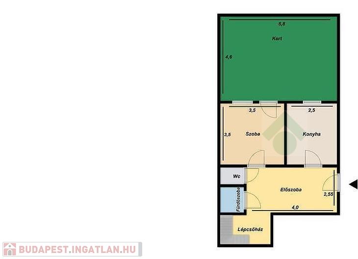 Földszint: előszoba, szoba, konyha, wc, fürdőszoba, 30nm-es kert
