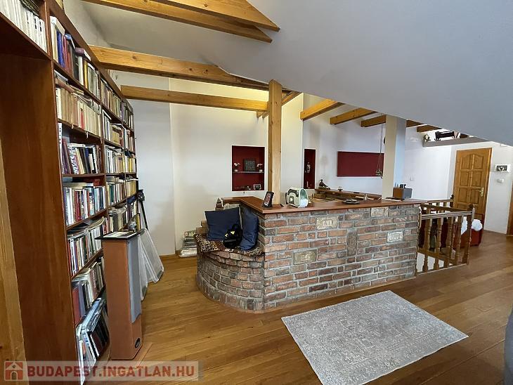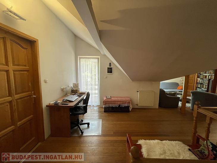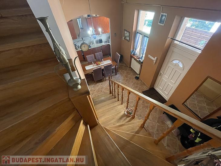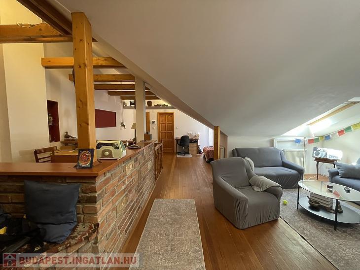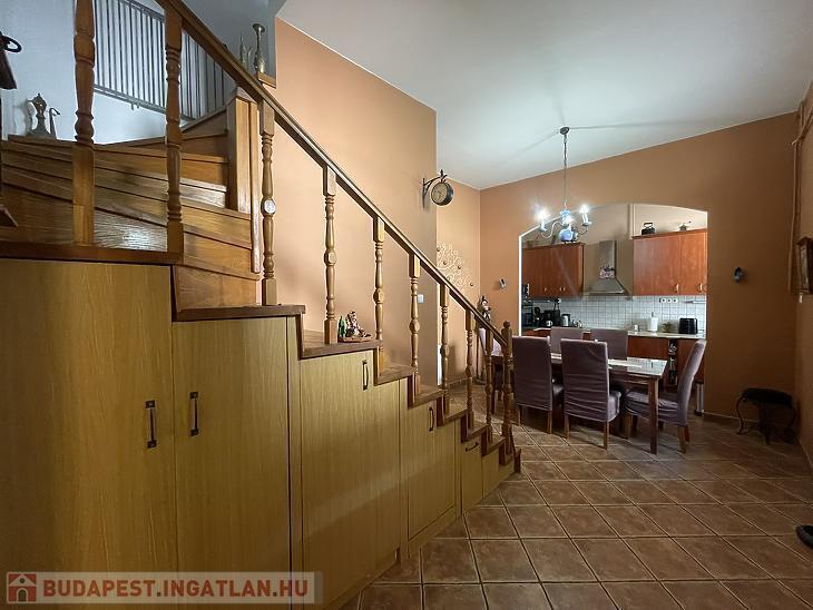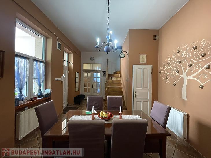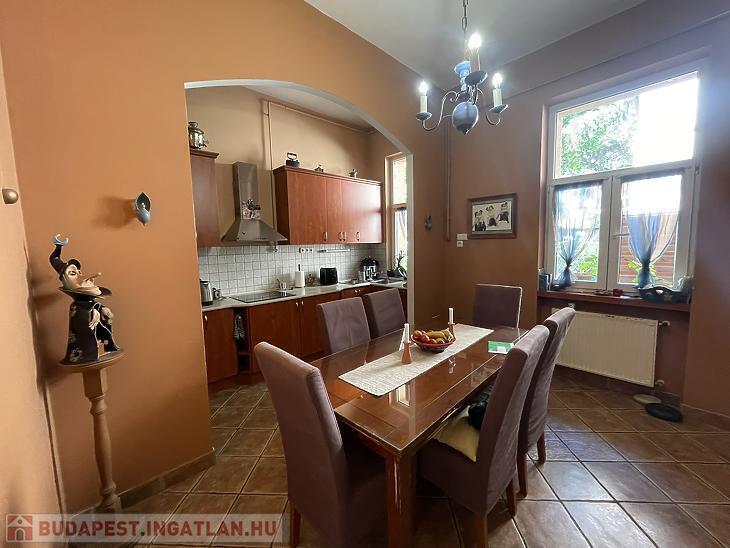 Újpesten, a piac közelében, frekventált, zöld fás utcában, 4 lakásos udvarban, eladásra kínálunk egy bruttó 210 nm-es, nettó 185 nm-es, belső kétszintes, 7 szobás, jó állapotú, téglalakást teraszkapcsolattal.