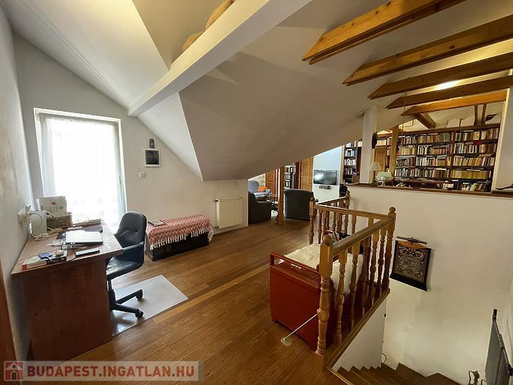 A tetőtérben 3 szoba, egy nappali, egy mini konyha, külön fürdőszoba és mellékhelyiség, gardrób, valamint egy kb. 8 nm-es terasz került kialakításra. Mindhárom szoba különnyíló, az egyikből közvetlenül egy kb. 10 nm-es gardrób helyiség nyílik.