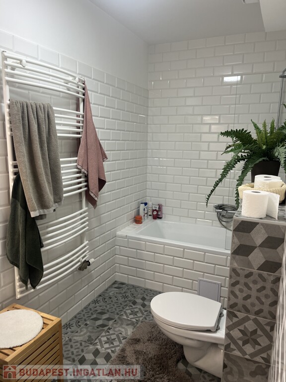 A lakás a legfelső (4.) emeleten található, de nem tetőtéri. A folyosó legvégén helyezkedik el, így nincs előtte átjárás vagy zaj. A bejárat előtt egy kb. 10 m²-es, mások által nem használt terület található, amely akár extra tárolásra is használható. Csak egy oldalon van falszomszédunk, így kimondottan csendes. A ház jól szigetelt, minden ablak háromrétegű üveg. A fűtés házközponti gázfűtés, radiátorokkal, egyedi mérőkkel. A közösköltség 68.000 Ft/hó (átlag, éves szinten), amely tartalmazza a fűtést és a vízdíjat is. Ezen felül csak a villany fizetendő.