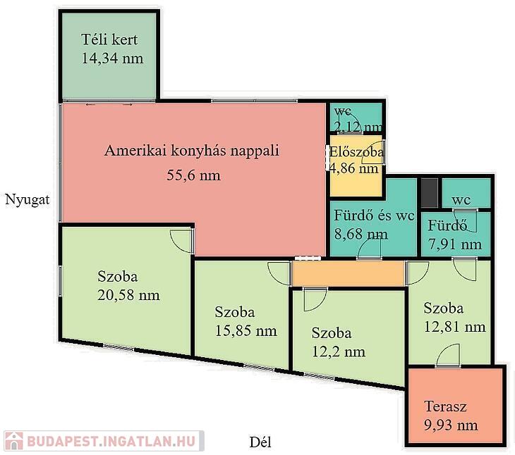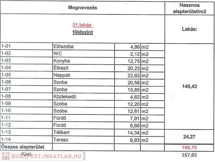 1. lakás: földszinten található nettó: 145,43nm-es (bruttó 169,7nm) amerikai konyhás nappali+ 4 hálószobás lakás. Az ingatlanhoz tartozik egy 14,34nm-es télikert, egy 9,93nm-es terasz és egy saját használatú kert ami 167,65nm.
