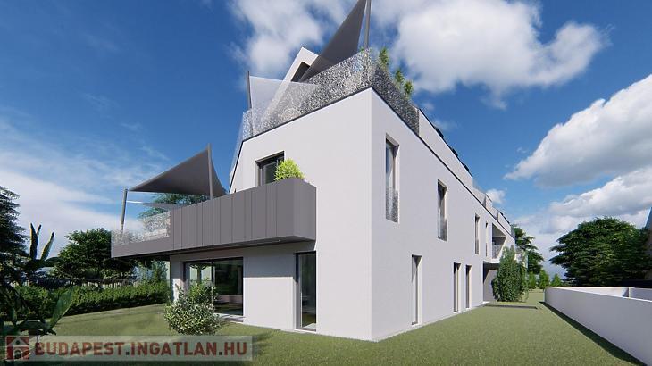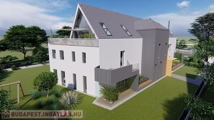 IV. kerület, Újpest-kertváros egyik legkedveltebb utcájában, családiházas, zöldövezeti részén kínálunk eladásra egy ÚJÉPÍTÉSŰ 6 lakásos társasházban egy földszinti amerikai-konyhás nappali+4 hálószobás, kertkapcsolatos lakást.